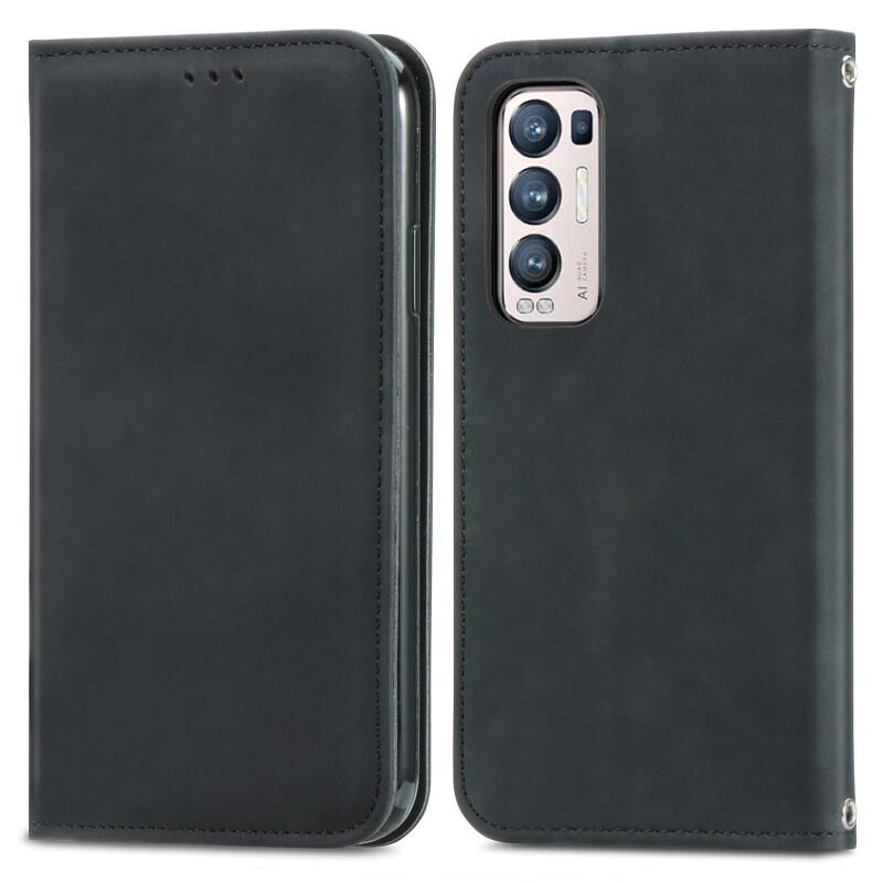 Για OPPO Reno5 Pro + 5G Retro δέρμα αίσθηση Business μαγνητική οριζόντια Flip δερμάτινη θήκη με κάτοχο & υποδοχές καρτών & πορτοφόλι & πλαίσιο φωτογραφιών (Μαύρο)