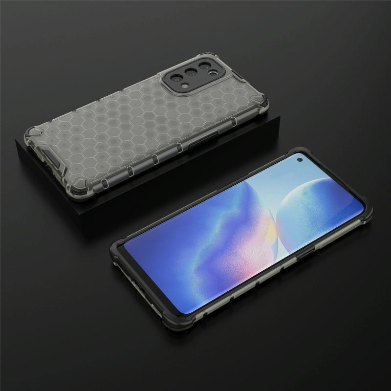 Θήκη για Oppo Reno5 Pro 5G ανθεκτική στις κρούσεις, από PC + TPU σε κυψελωτό σχέδιο (Μαύρο)