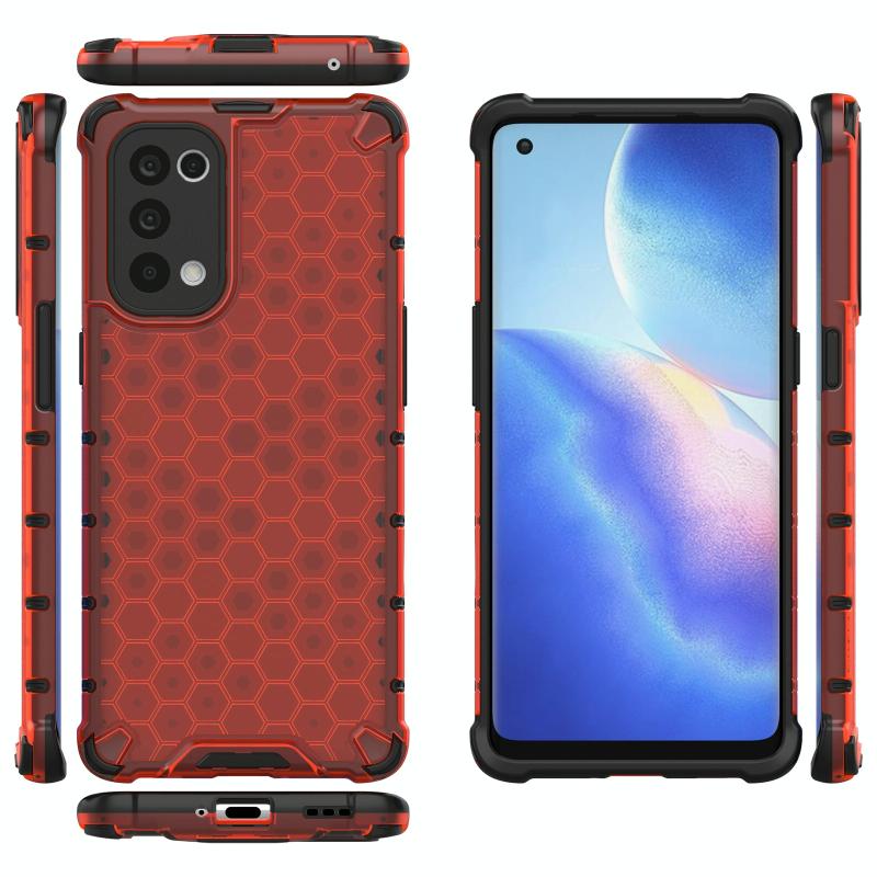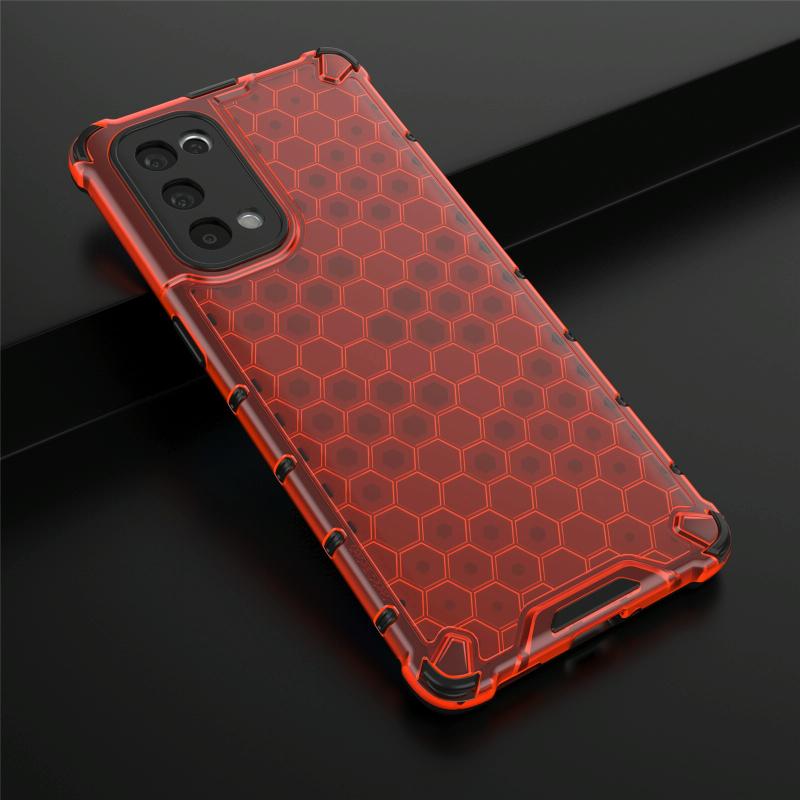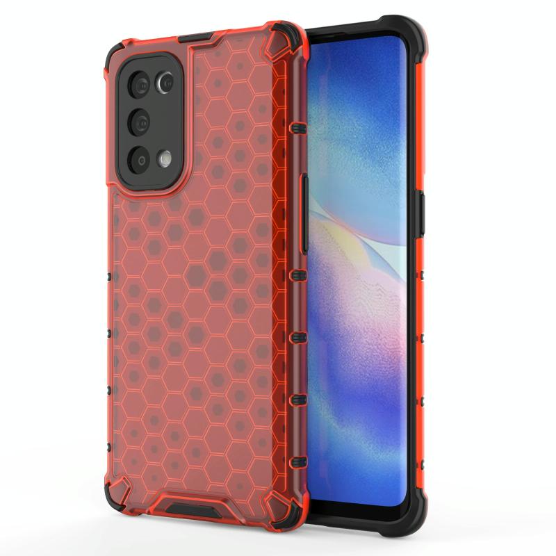 Θήκη για Oppo Reno5 Pro 5G ανθεκτική στις κρούσεις, από PC + TPU σε κυψελωτό σχέδιο (Κόκκινο)