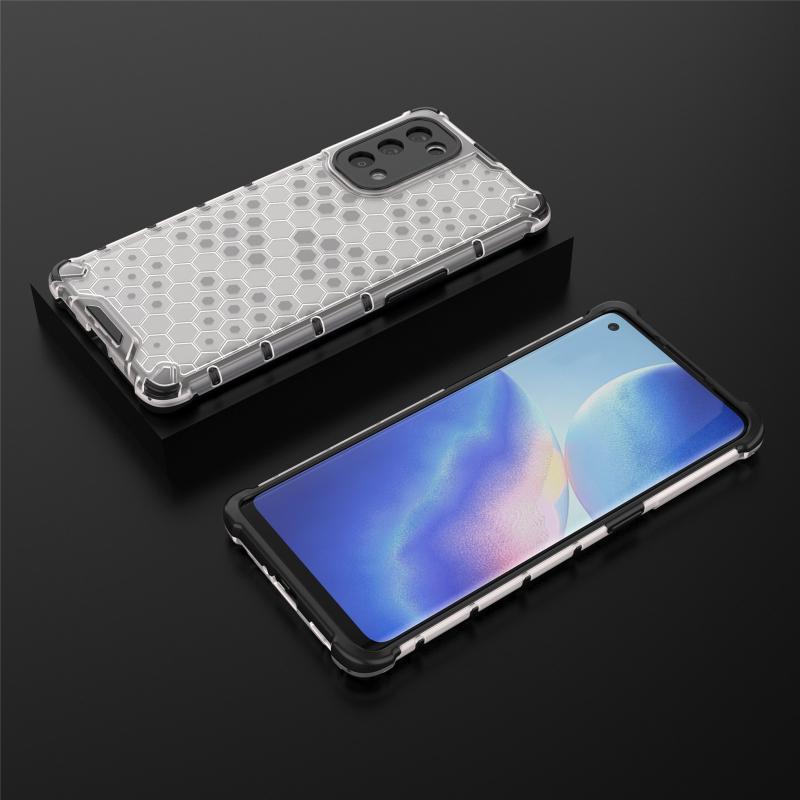 Θήκη για Oppo Reno5 Pro 5G ανθεκτική στις κρούσεις, από PC + TPU σε κυψελωτό σχέδιο (Λευκό)