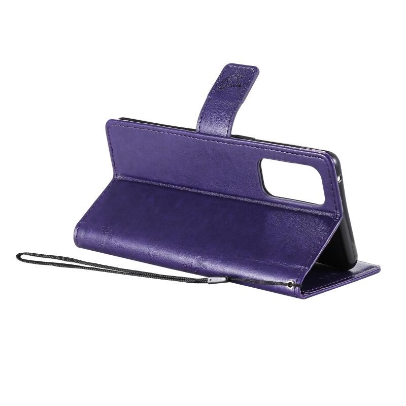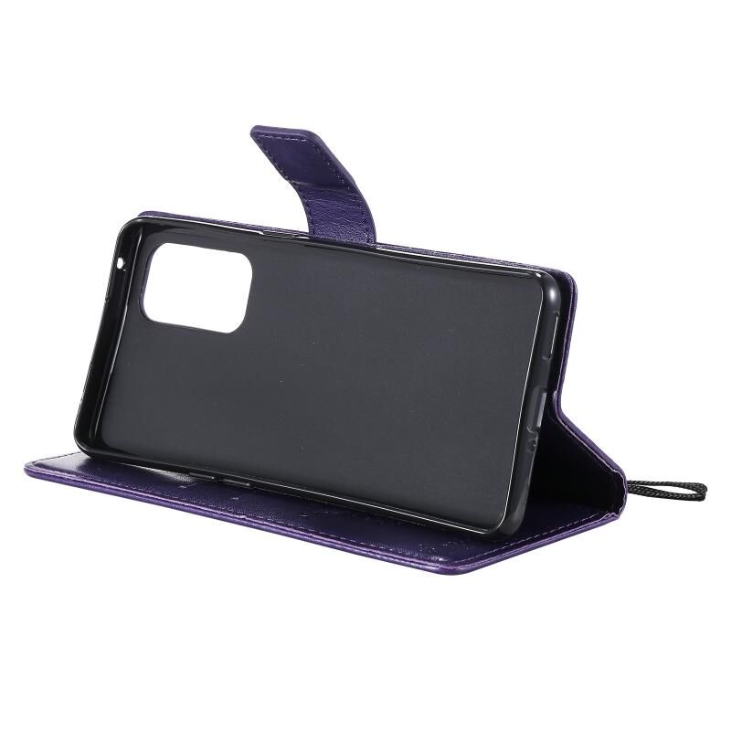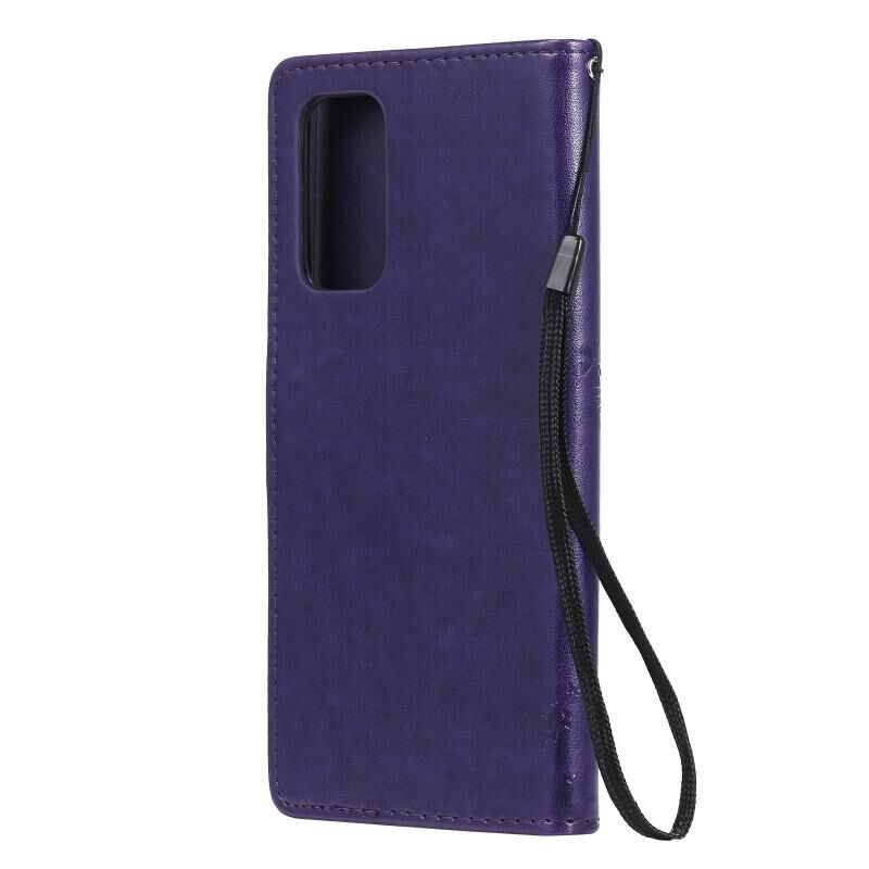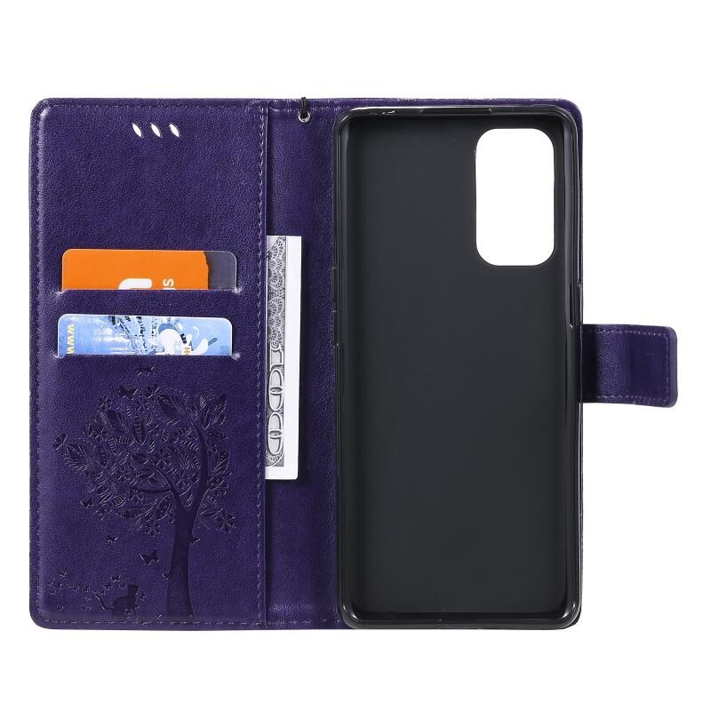 Θήκη για OPPO Reno5 Pro 5G με σχέδιο Δέντρου & Γάτας, με ανάγλυφο τύπωμα, οριζόντια, από δερματίνη PU με βάση στήριξης, θήκες για κάρτες, πορτοφόλι & λουρί (Μωβ)