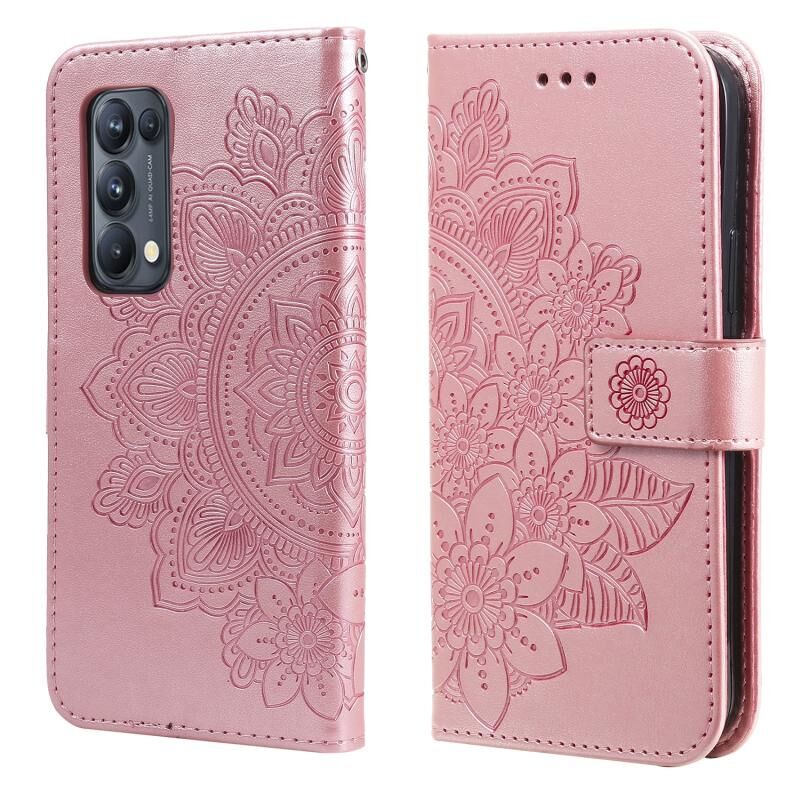 Για OPPO Reno5 Pro + / Βρείτε X3 Neo 7-πέταλα λουλούδια ανάγλυφο μοτίβο οριζόντια Flip PU δέρμα υπόθεση με κάτοχο & υποδοχές για κάρτες & πορτοφόλι & πλαίσιο φωτογραφιών (Rose Gold)
