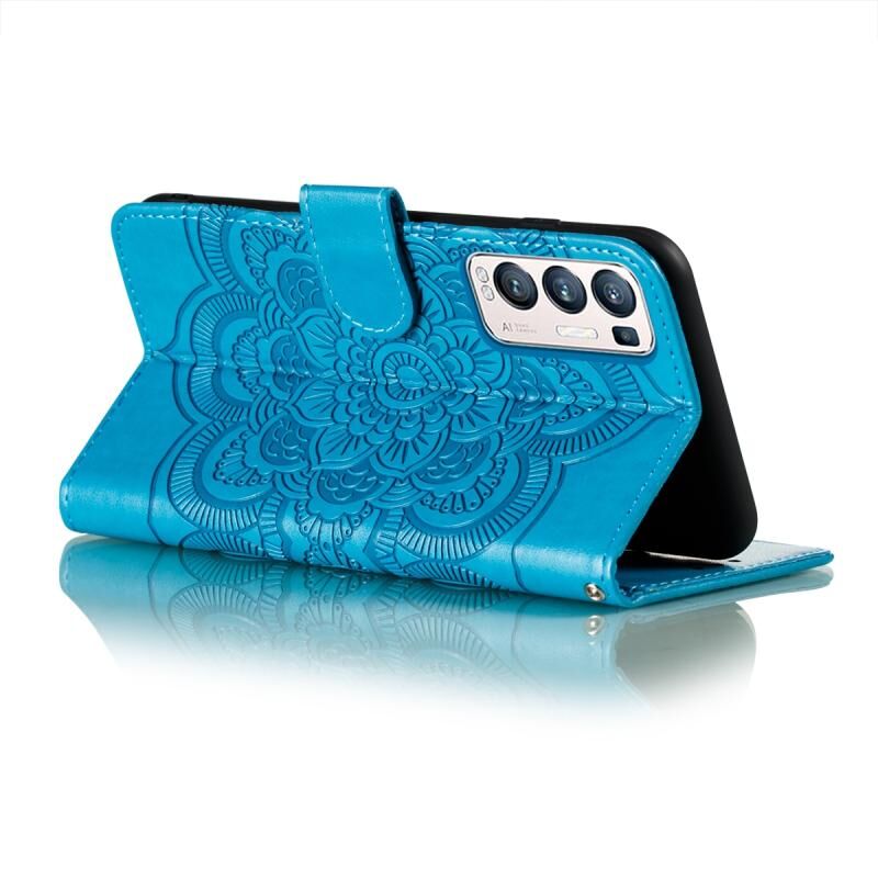Για OPPO Reno5 Pro + / Βρείτε X3 Neo Mandala ανάγλυφο μοτίβο οριζόντια Flip PU δέρμα υπόθεση με κάτοχο & υποδοχές για κάρτες & πορτοφόλι & Lanyard (Μπλε)