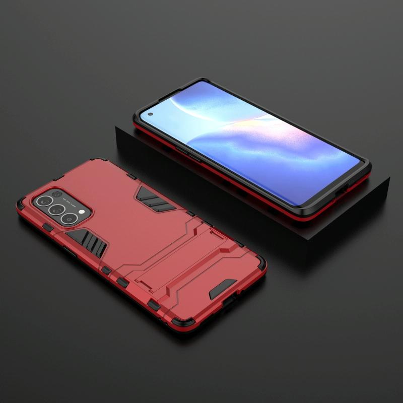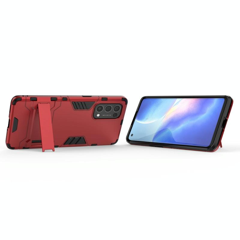 Θήκη προστασίας για OPPO Reno5 Pro PC + TPU αντικραδασμική με βάση στήριξης (Red)