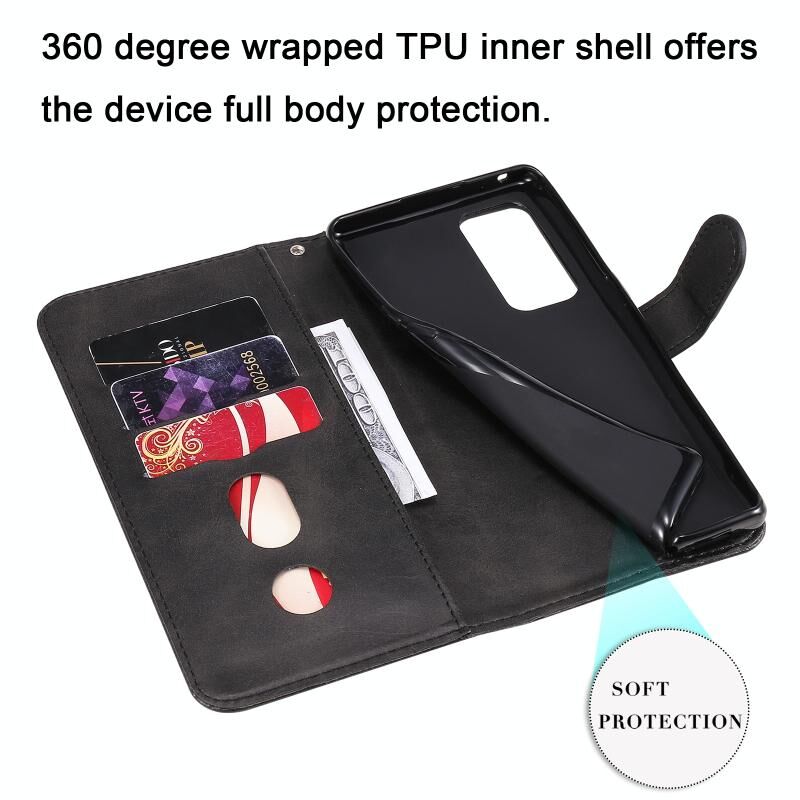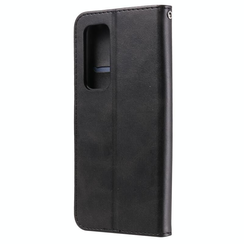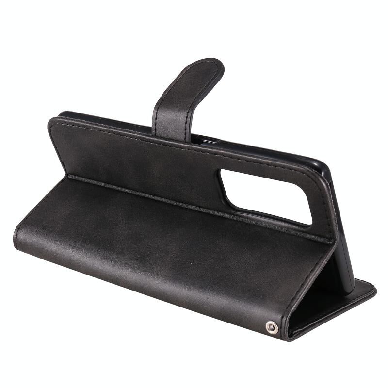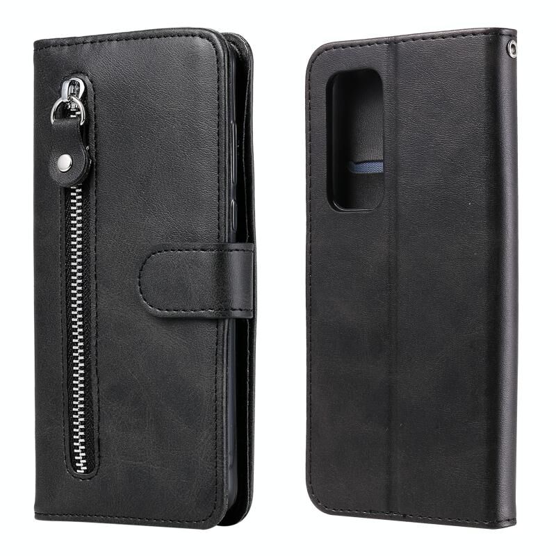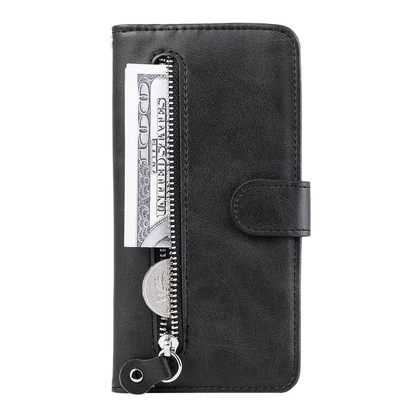Θήκη δέρματος οριζόντιας αναδίπλωσης με φερμουάρ και υφή μοσχαριού για OPPO Reno5 Pro Plus / Find X3 Neo με βάση στήριξης & υποδοχές καρτών & πορτοφόλι (Μαύρο)