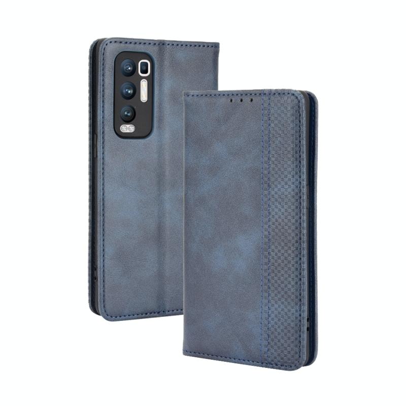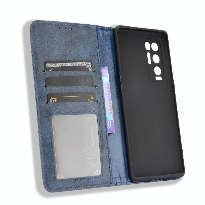 Θήκη δέρματος οριζόντιας αναδίπλωσης με μαγνητικό κούμπωμα, υφή Crazy Horse Retro για OPPO Reno5 Pro Plus / Find X3 Neo με βάση στήριξης & υποδοχές καρτών & κορνίζα φωτογραφιών (Κόκκινο)