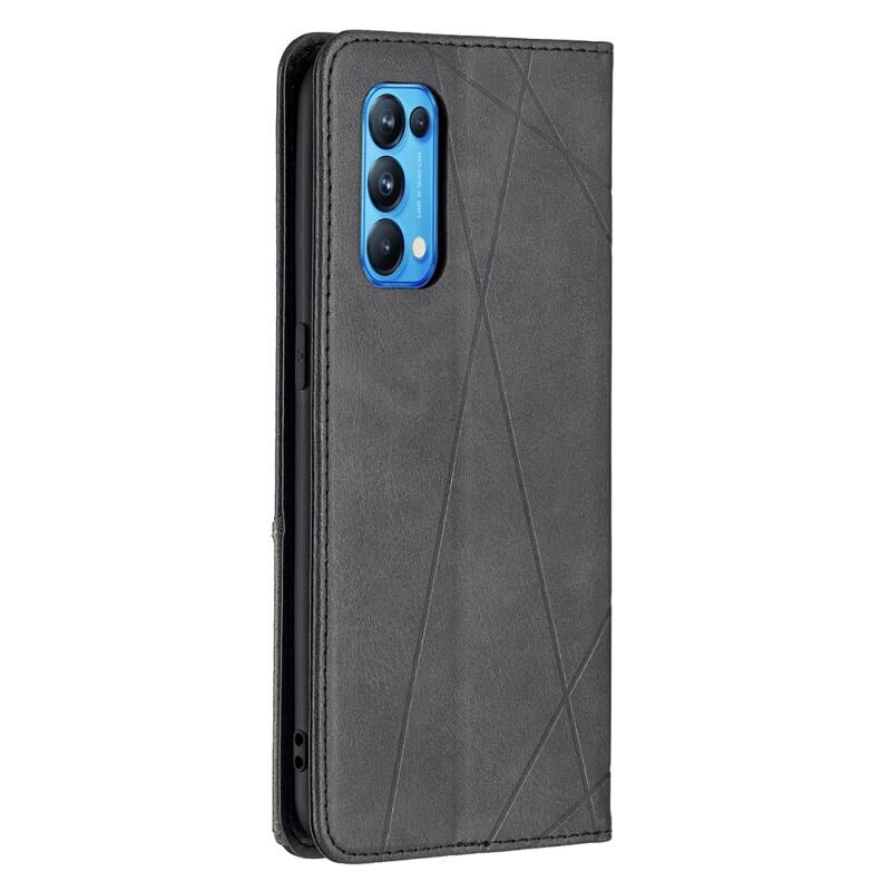 Για OPPO Reno5 Rhombus Υφή Οριζόντια Flip μαγνητική δερμάτινη θήκη με θήκη & υποδοχές για κάρτες (μαύρο)