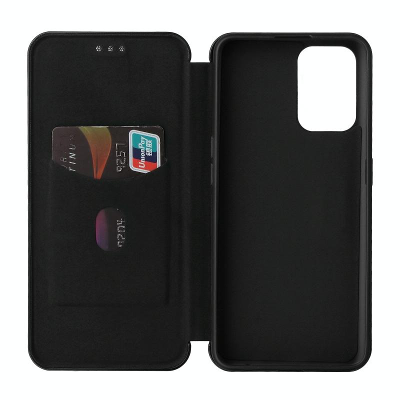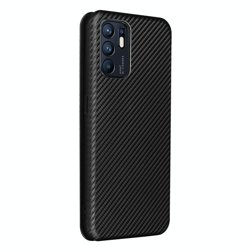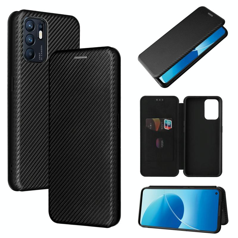 Για OPPO Reno6 4G Θήκη Οριζόντιας Αναδίπλωσης από Ανθρακονήματα TPU + PC + Δερματίνη PU με Θήκη Καρτών (Καφέ)