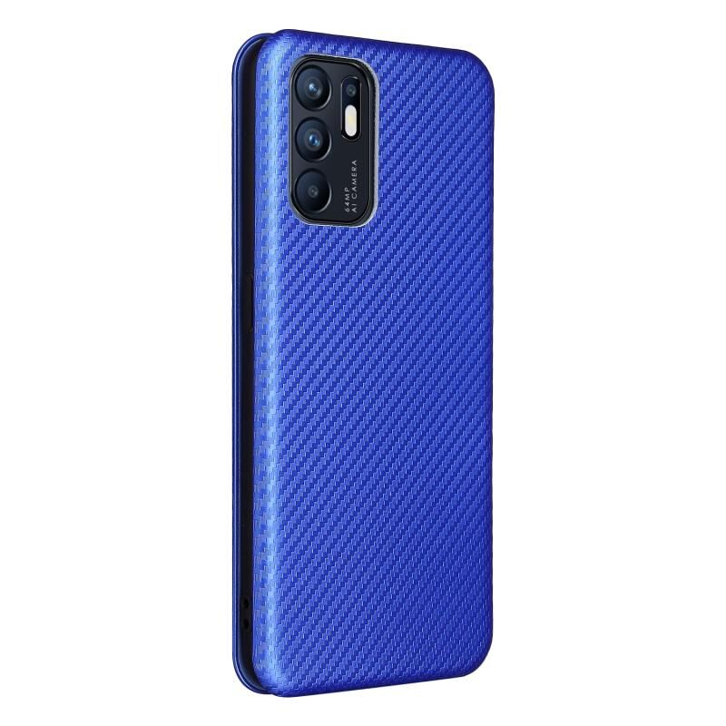 Για OPPO Reno6 4G Θήκη Οριζόντιας Αναδίπλωσης από Ανθρακονήματα TPU + PC + Δερματίνη PU με Θήκη Καρτών (Καφέ)