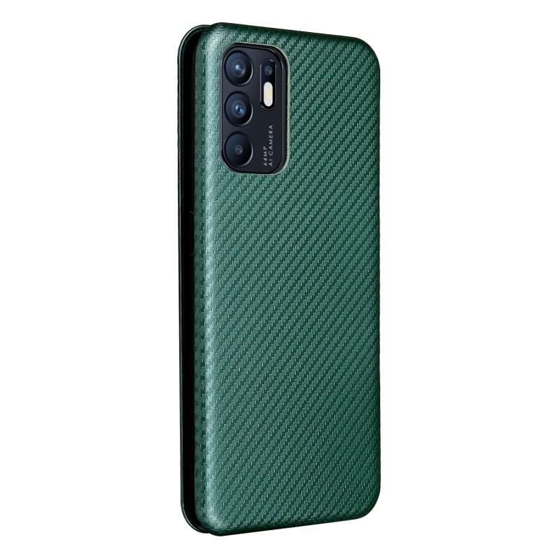 Για OPPO Reno6 4G Θήκη Οριζόντιας Αναδίπλωσης από Ανθρακονήματα TPU + PC + Δερματίνη PU με Θήκη Καρτών (Καφέ)