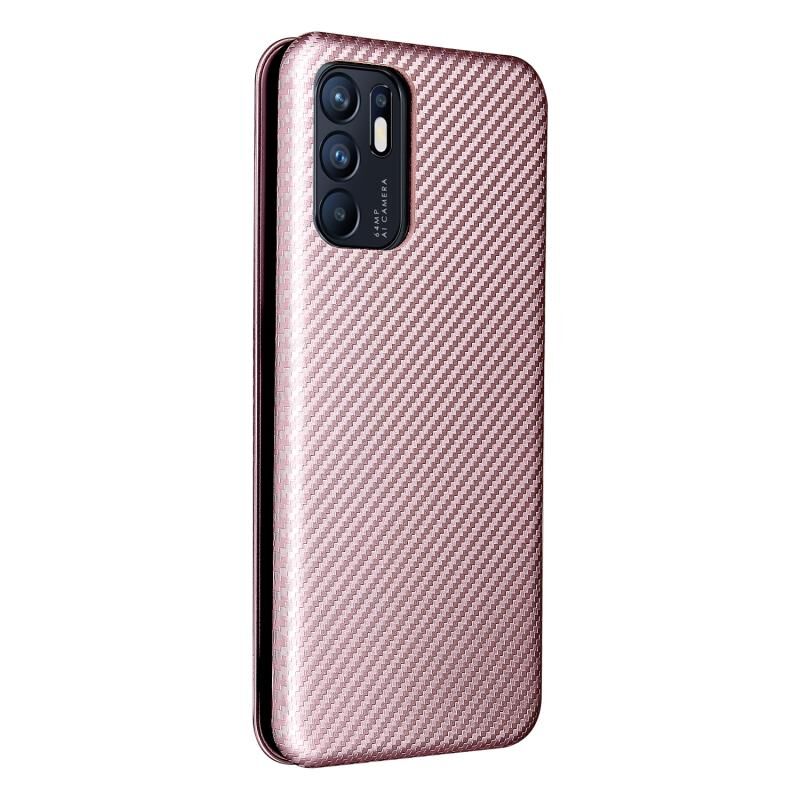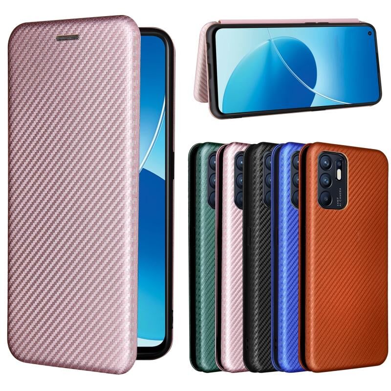 Για OPPO Reno6 4G Θήκη Οριζόντιας Αναδίπλωσης από Ανθρακονήματα TPU + PC + Δερματίνη PU με Θήκη Καρτών (Καφέ)