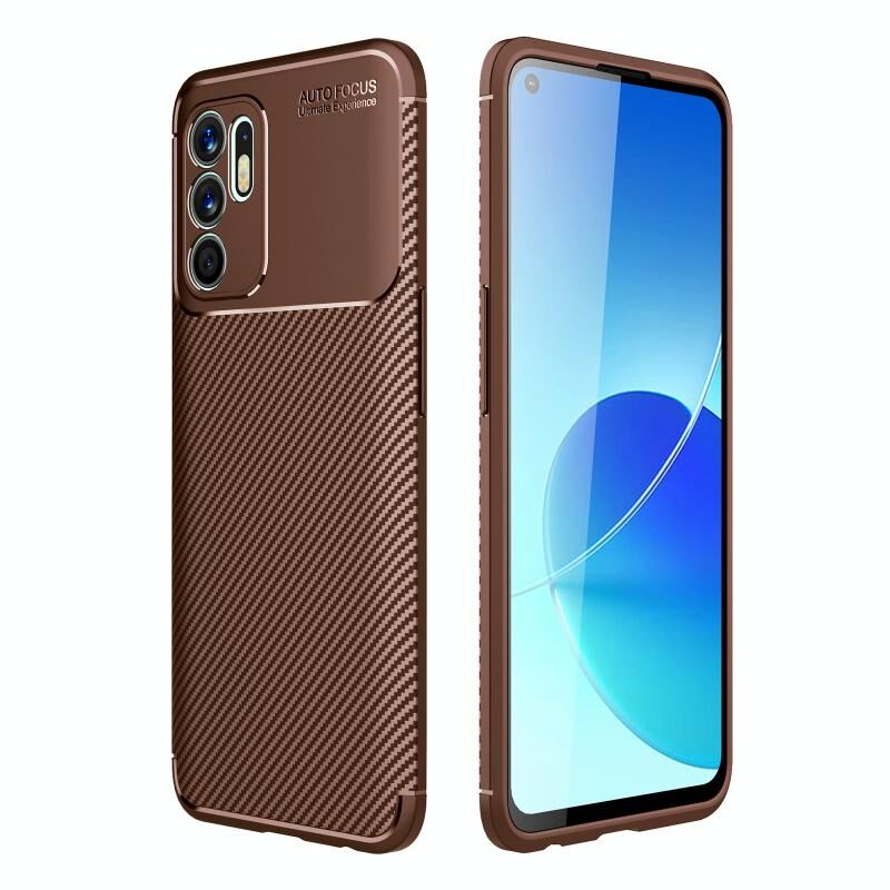 Για OPPO Reno6 4G (Ινδονησία) Carbon Fiber Texture Shockproof TPU Case (Brown)