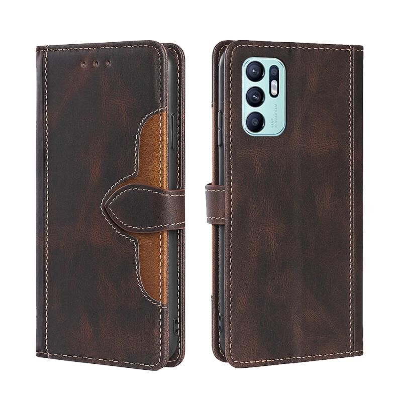 Για OPPO Reno6 4G δέρμα αίσθηση άχυρο καπέλο μαγνητική πόρπη δερμάτινη θήκη τηλεφώνου (Καφέ)