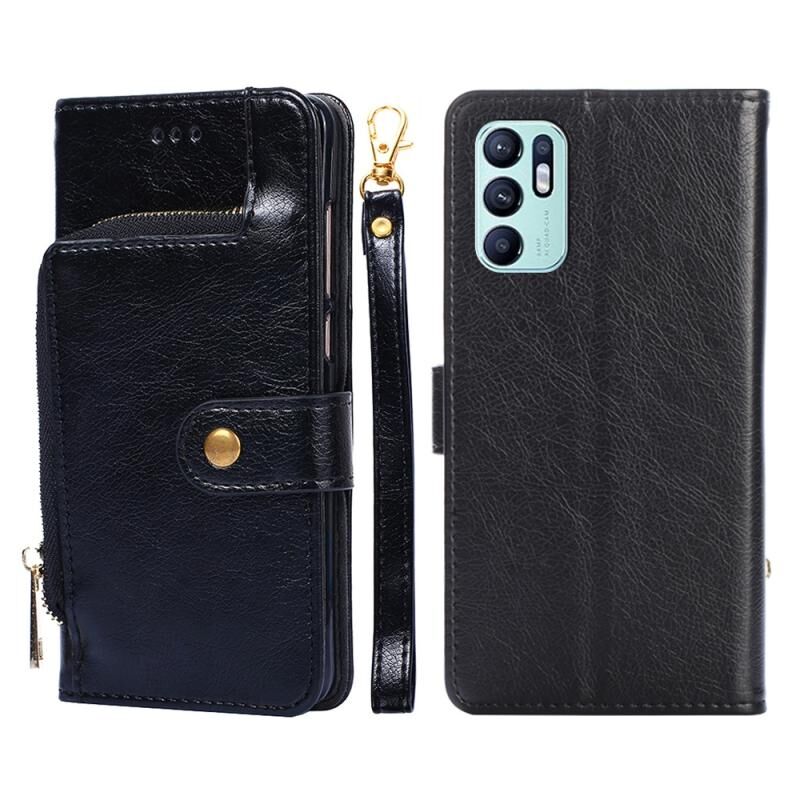 Για OPPO Reno6 4G φερμουάρ τσάντα PU + TPU οριζόντια Flip δέρμα τηλέφωνο υπόθεση (Μαύρο)