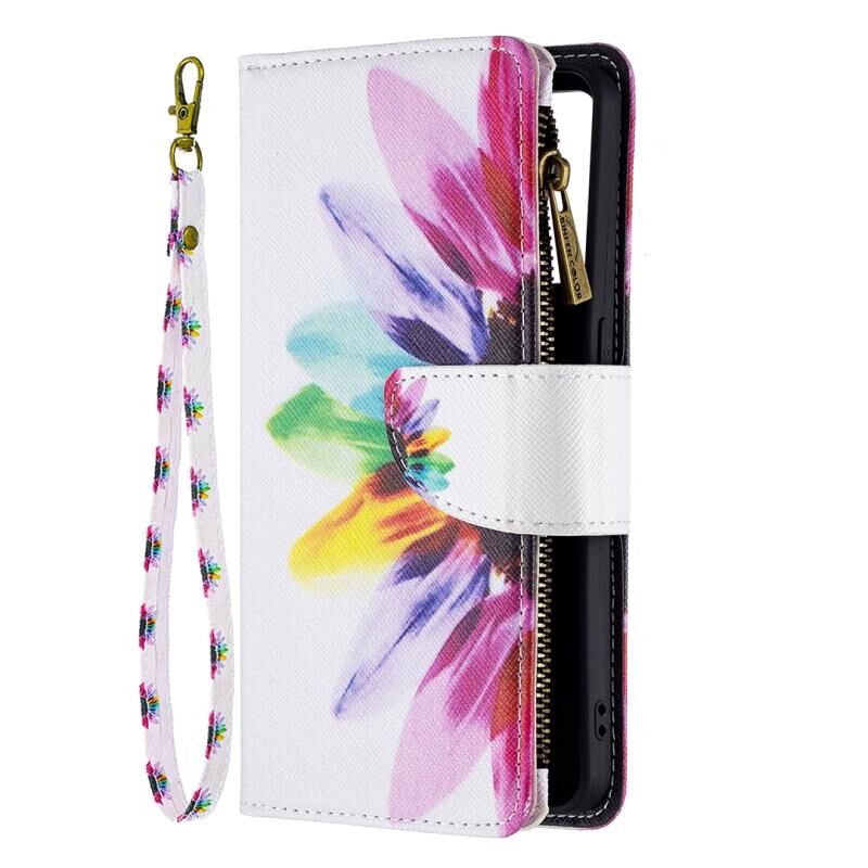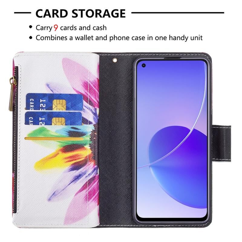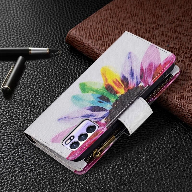 Θήκη δέρματος οριζόντιας αναδίπλωσης με φερμουάρ και σχέδιο πολύχρωμης ζωγραφικής για OPPO Reno6 5G με βάση για κάρτες και πορτοφόλι (Ηλίανθος)