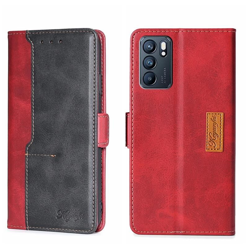Για OPPO Reno6 5G αντίθεση χρώμα πλευρά πόρπη δερμάτινη θήκη τηλεφώνου (Κόκκινο + Μαύρο)