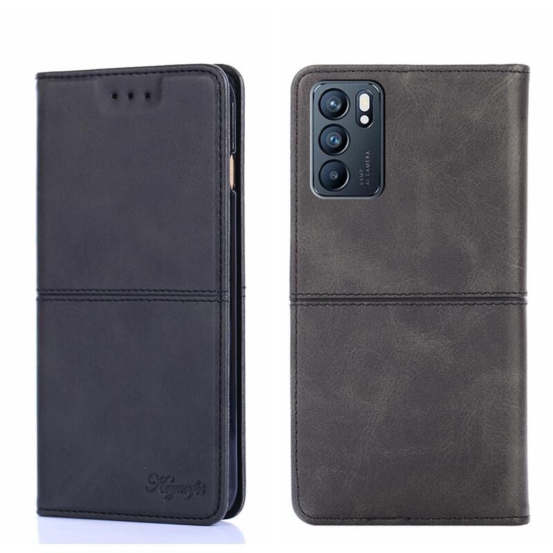 Για OPPO Reno6 5G Cow Texture μαγνητική οριζόντια Flip δερμάτινη θήκη τηλεφώνου (Μαύρο)