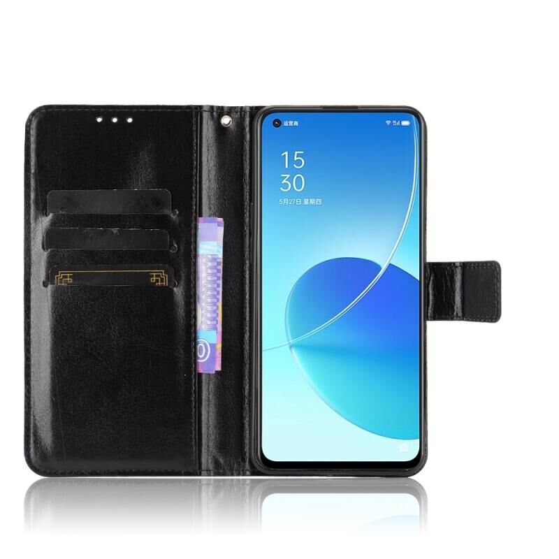 Για OPPO Reno6 5G Crazy Horse Υφή οριζόντια Flip δερμάτινη θήκη με θήκη & υποδοχές καρτών & κορδόνι (μαύρο)
