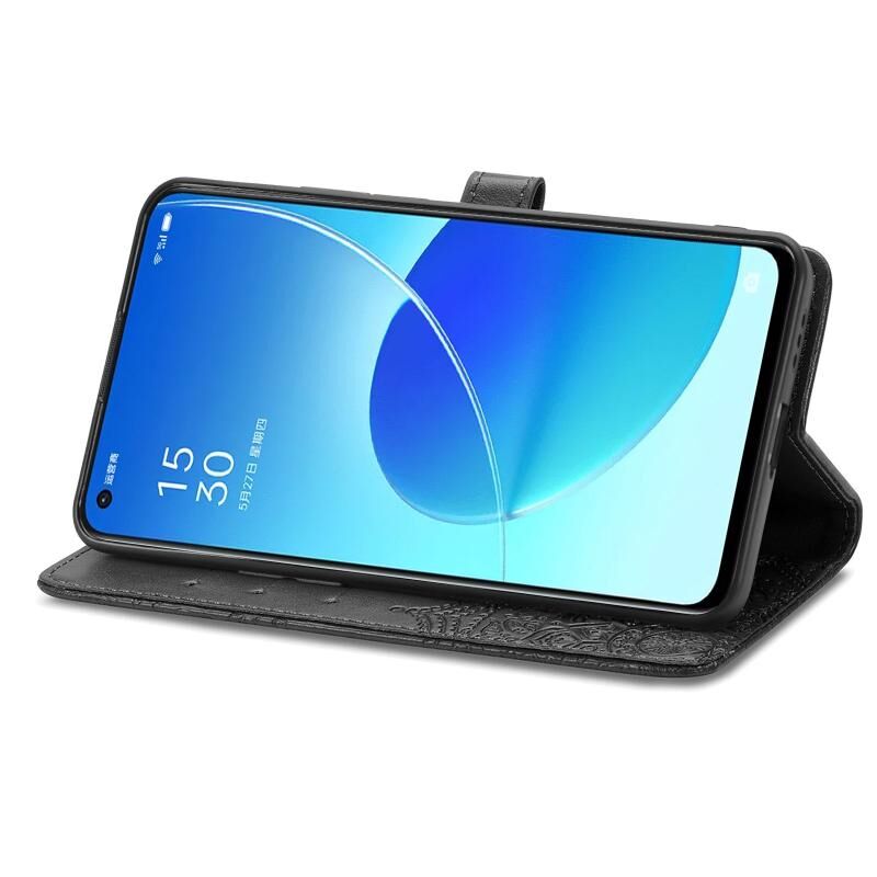 Για OPPO Reno6 5G Mandala λουλούδι ανάγλυφο οριζόντια Flip δερμάτινη θήκη με κάτοχο & τρεις υποδοχές για κάρτες & πορτοφόλι & κορδόνι (μαύρο)