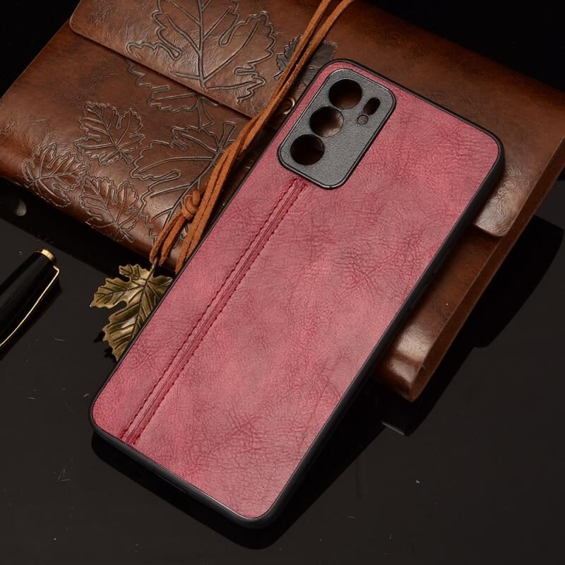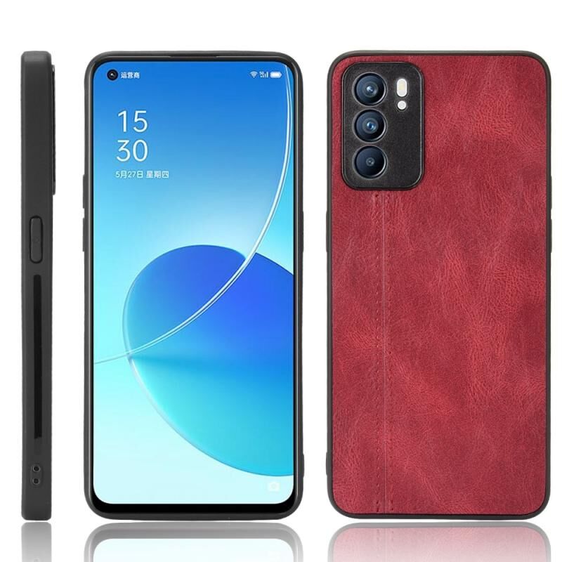 Για OPPO Reno6 5G Shockproof ραπτικής αγελάδας δέρμα υφή PC + PU + TPU υπόθεση (Κόκκινο)