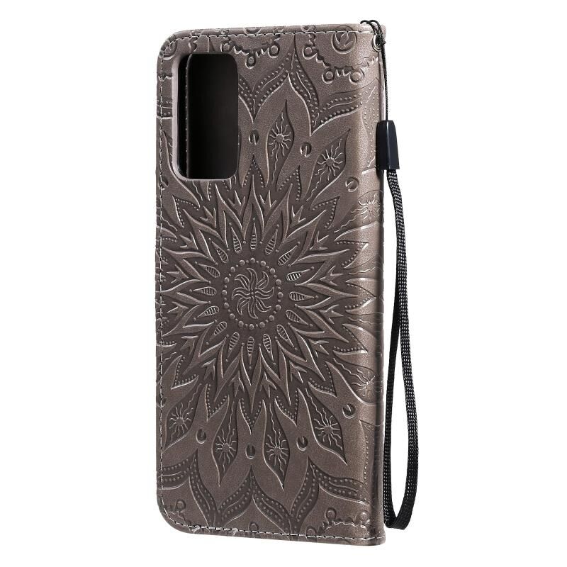 Για OPPO Reno6 5G Sun ανάγλυφο μοτίβο οριζόντια Flip δερμάτινη θήκη με υποδοχή κάρτας & κάτοχος & πορτοφόλι & κορδόνι (Γκρι)