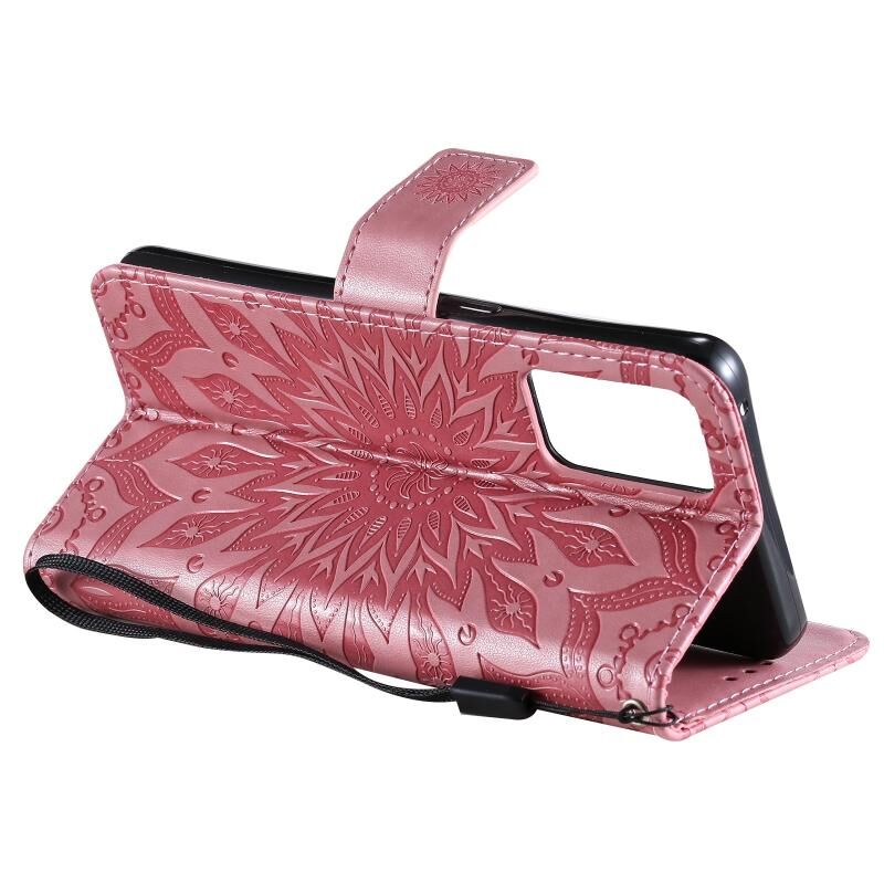 Για OPPO Reno6 5G Sun ανάγλυφο μοτίβο οριζόντια Flip δερμάτινη θήκη με υποδοχή κάρτας & κάτοχος & πορτοφόλι & Lanyard (ρόζ)