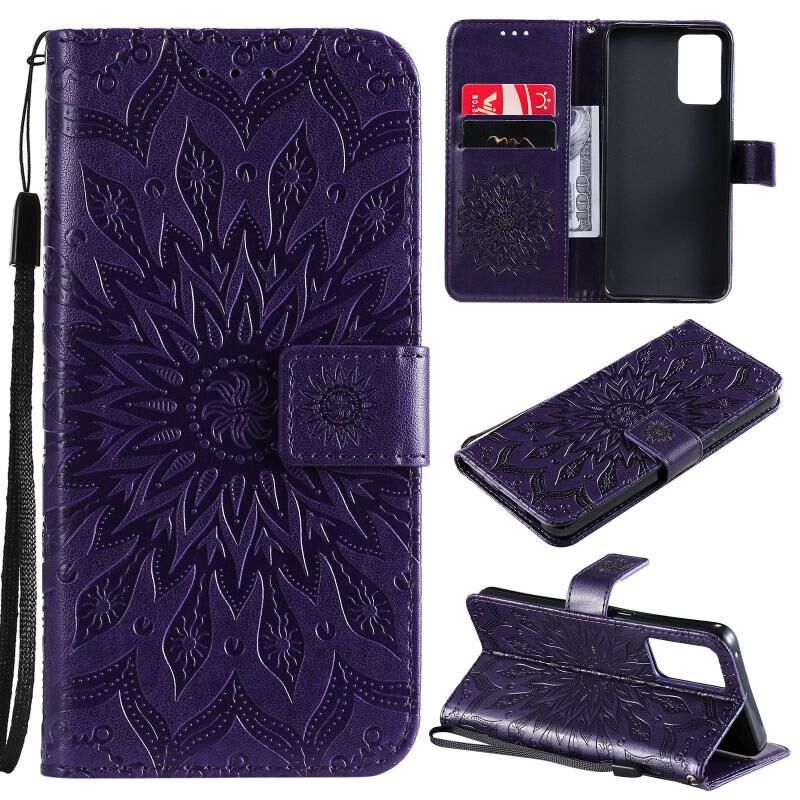 Για OPPO Reno6 5G Sun ανάγλυφο μοτίβο οριζόντια Flip δερμάτινη θήκη με υποδοχή κάρτας & κάτοχος & πορτοφόλι & κορδόνι (μωβ)