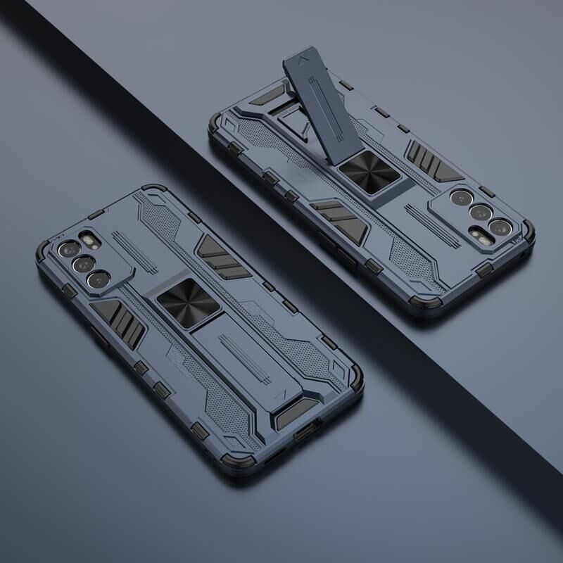 Για OPPO Reno6 5G Supersonic PC + TPU Shock-proof προστατευτική θήκη με θήκη (σκούρο μπλε)