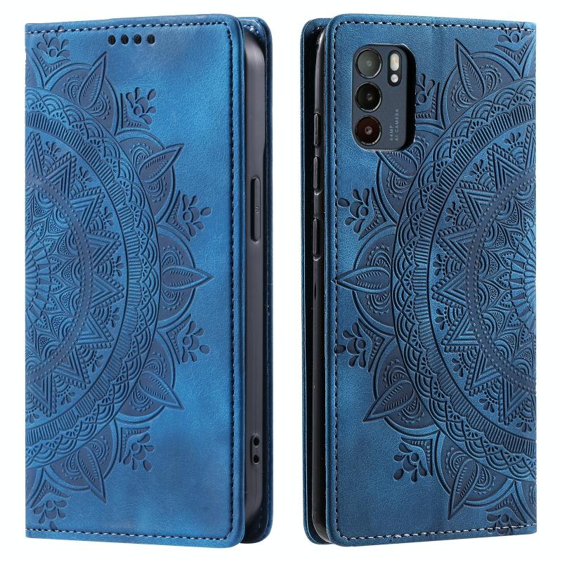 For OPPO Reno6 5G Totem Embossed Magnetic Leather Phone Case(Blue)