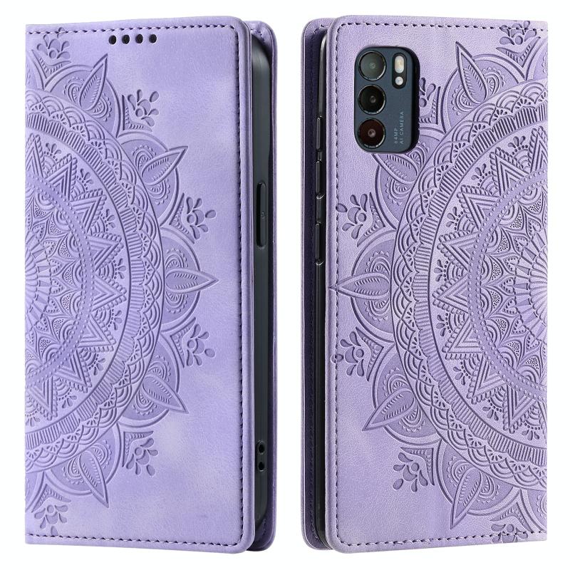 For OPPO Reno6 5G Totem Embossed Magnetic Leather Phone Case(Purple)