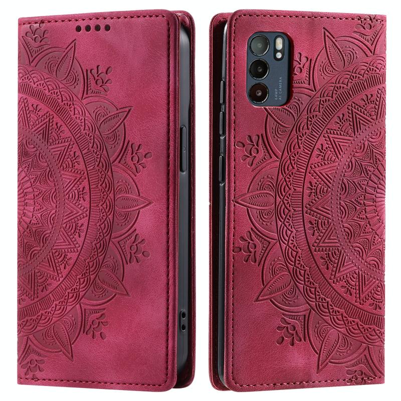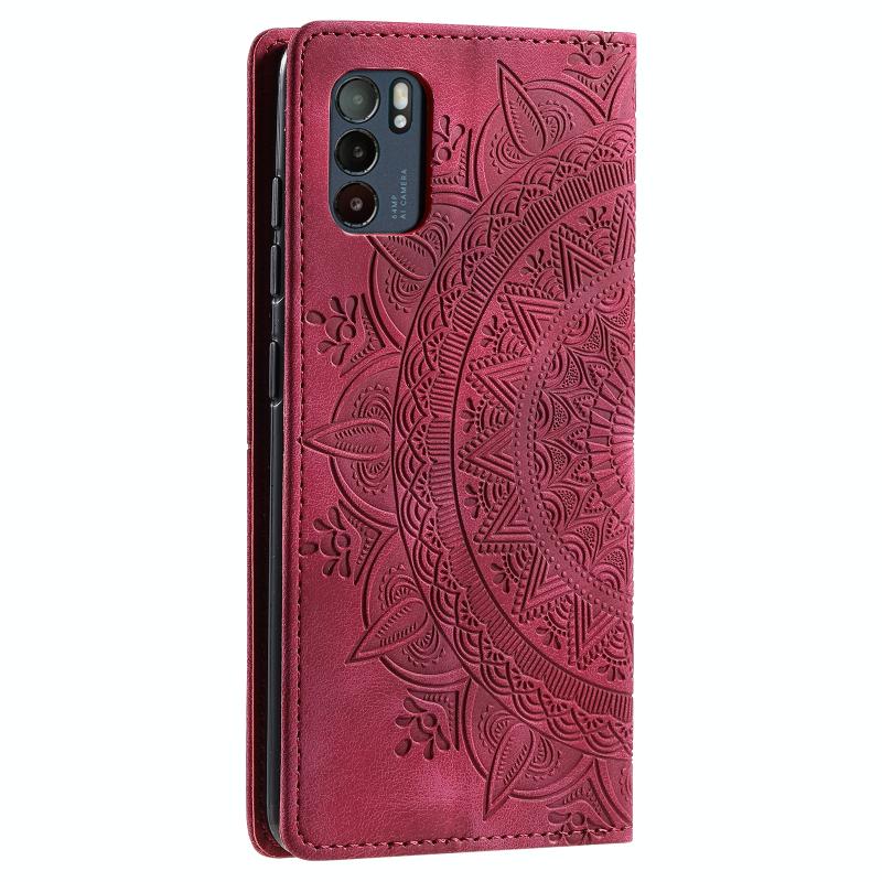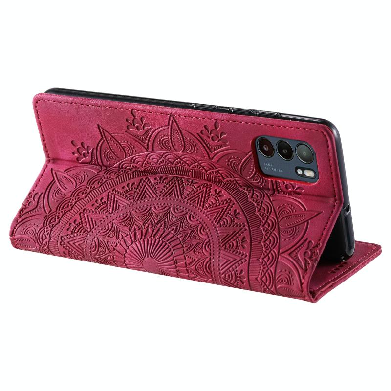 For OPPO Reno6 5G Totem Embossed Magnetic Leather Phone Case(Red)