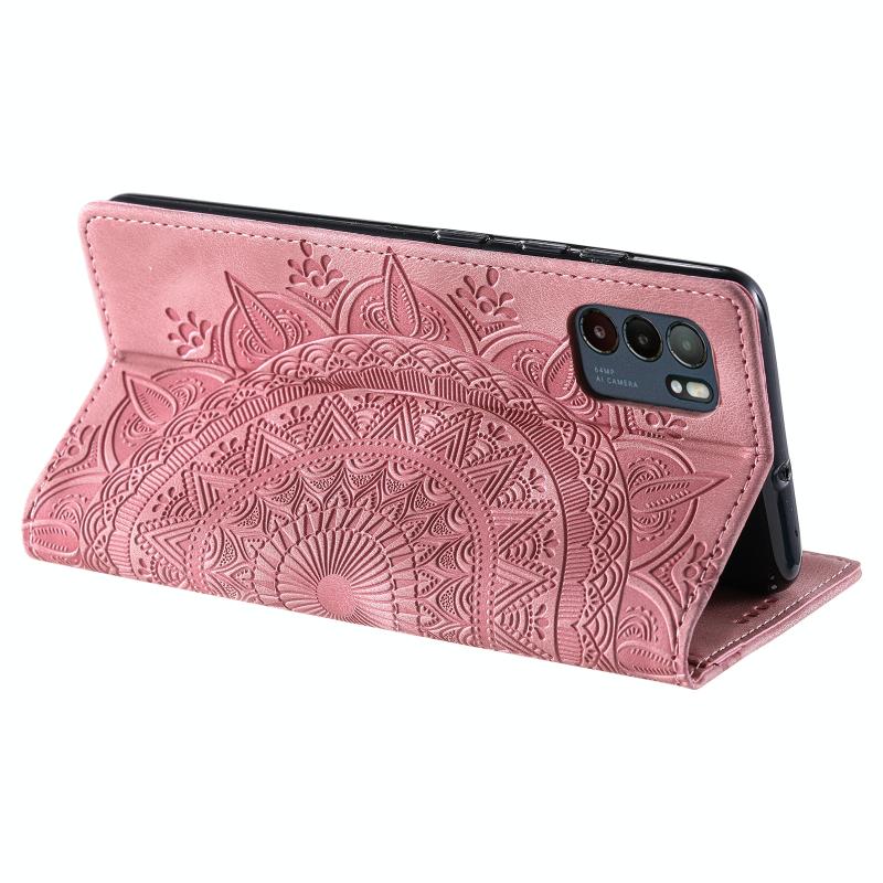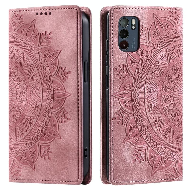 For OPPO Reno6 5G Totem Embossed Magnetic Leather Phone Case(Rose Gold)