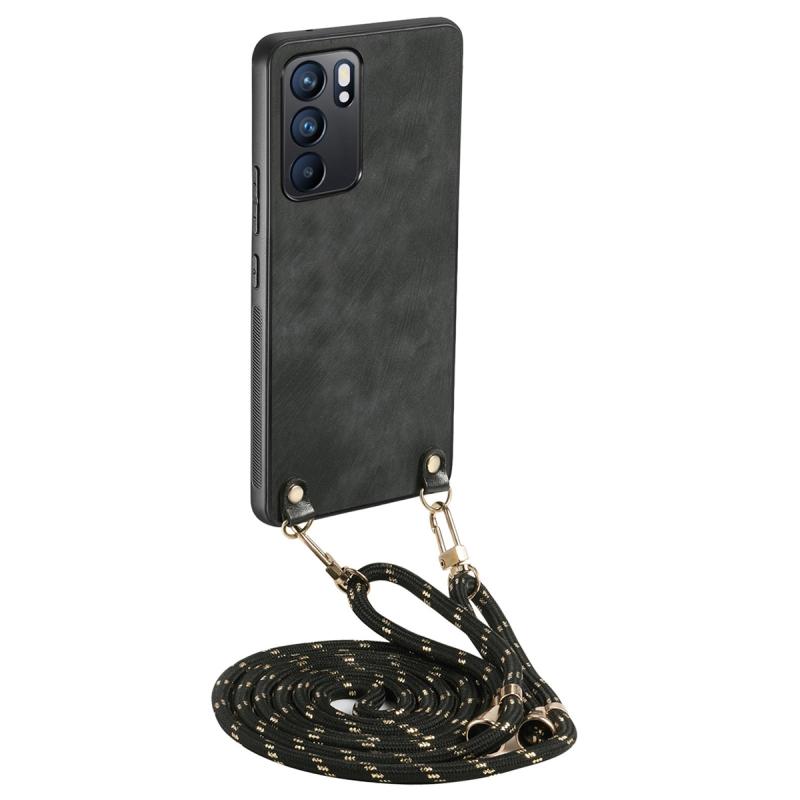 Θήκη κινητού τηλεφώνου OPPO Reno6 5G με δερμάτινη πλάτη PC σε vintage στυλ με λουρί crossbody (Καφέ)