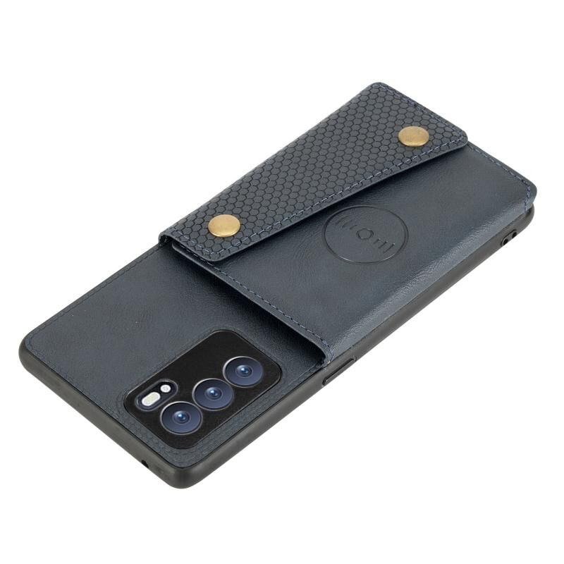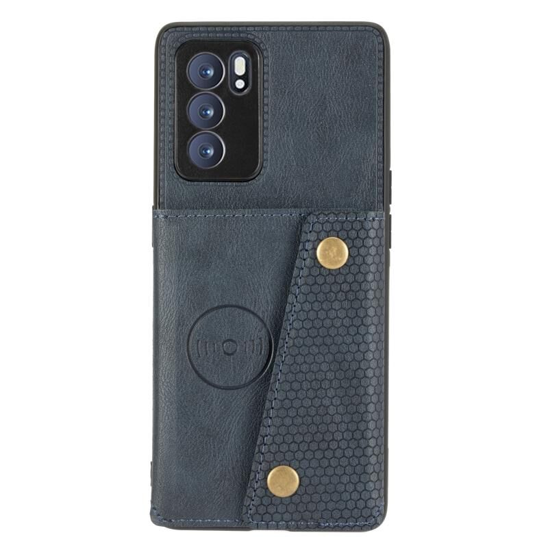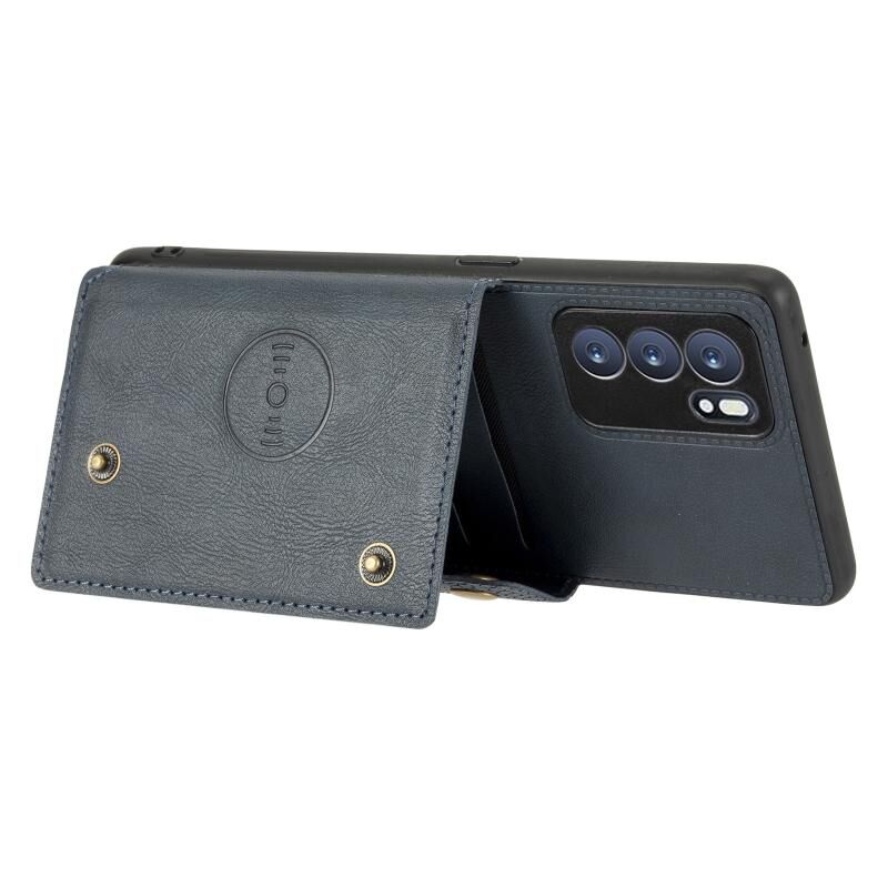 Για OPPO Reno6 Pro 5G Διπλή πόρπη PU + TPU Shockproof μαγνητική προστατευτική θήκη με υποδοχή κάρτας & κάτοχος (Μπλε)