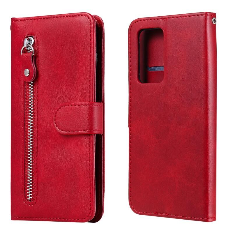 Για OPPO Reno6 Pro + 5G μόδας μοσχάρι υφή φερμουάρ οριζόντια Flip δερμάτινη θήκη με κάτοχο & υποδοχές για κάρτες & πορτοφόλι (Κόκκινο)