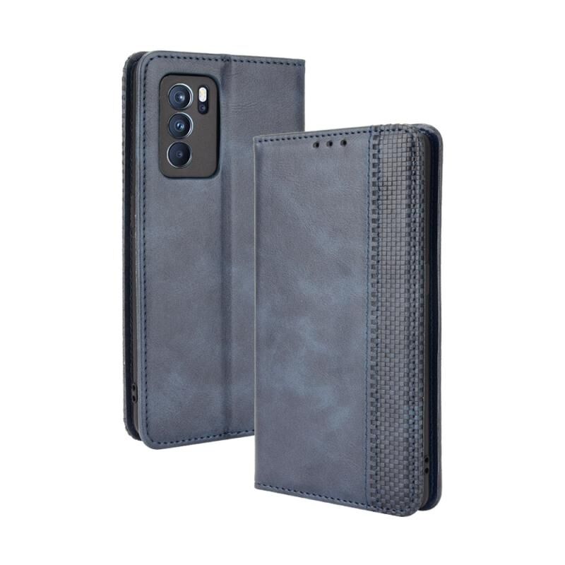 Για OPPO Reno6 Pro 5G Μαγνητική πόρπη Retro Crazy Horse Υφή οριζόντια Flip δερμάτινη θήκη με κάτοχο & υποδοχές καρτών & πλαίσιο φωτογραφιών (Μπλε)