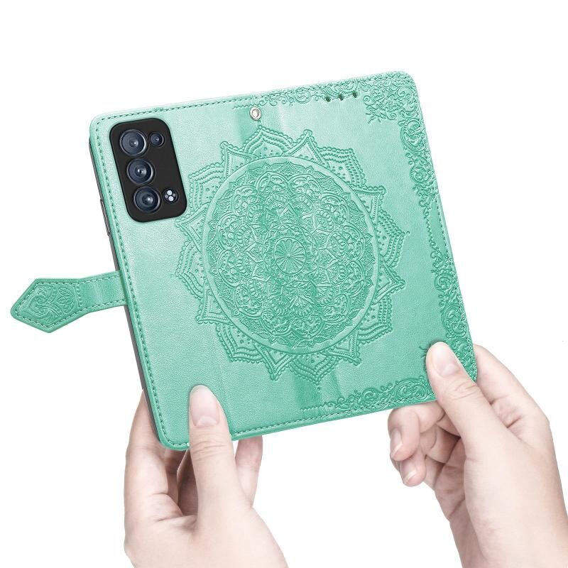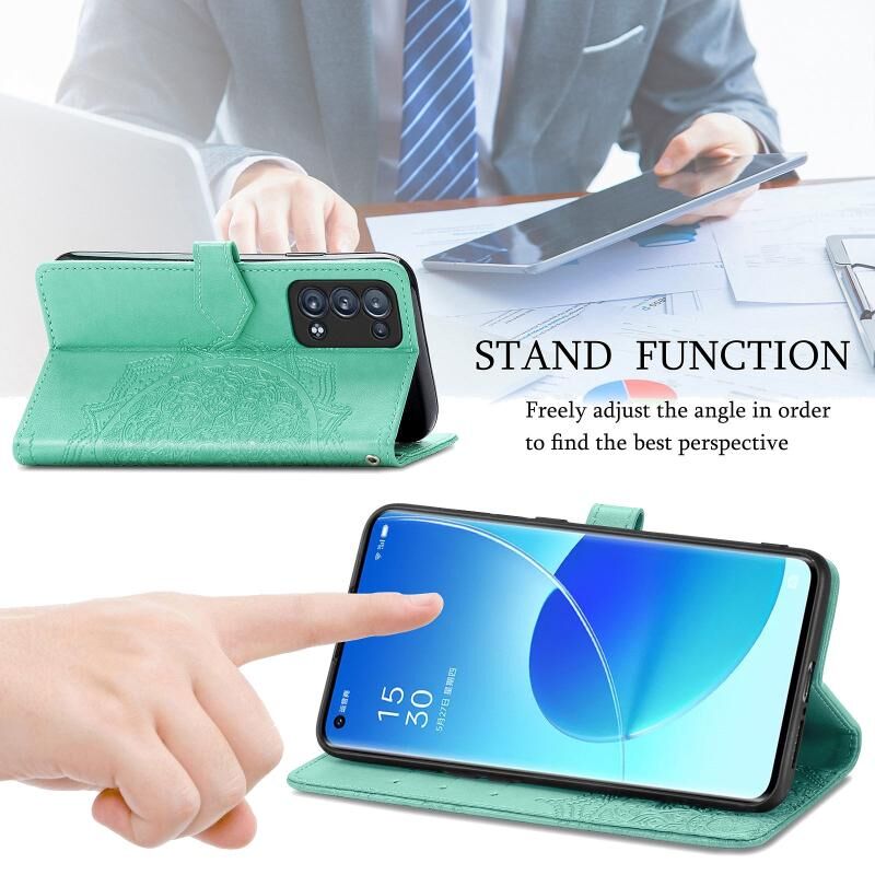 Για OPPO Reno6 Pro + 5G Mandala λουλούδι ανάγλυφο οριζόντια Flip δερμάτινη θήκη με θήκη & τρεις υποδοχές για κάρτες & πορτοφόλι & κορδόνι (πράσινο)