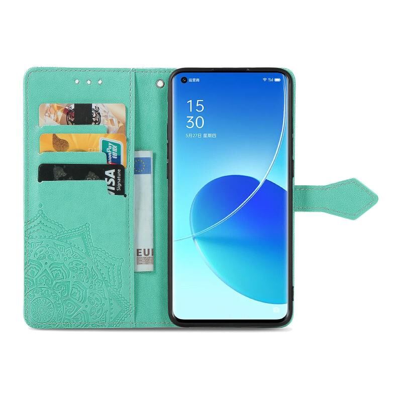Για OPPO Reno6 Pro 5G Mandala λουλούδι ανάγλυφο οριζόντια Flip δερμάτινη θήκη με κάτοχο & τρεις υποδοχές για κάρτες & πορτοφόλι & κορδόνι (πράσινο)