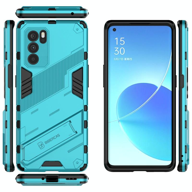 For OPPO Reno6 Pro 5G Punk Armor 2 in 1 PC + TPU Shockproof Case with Invisible Holder(Blue)