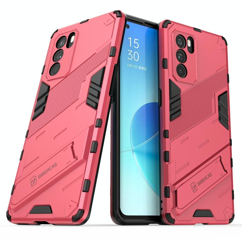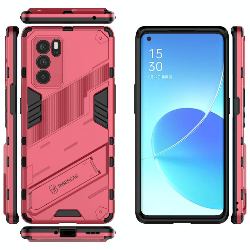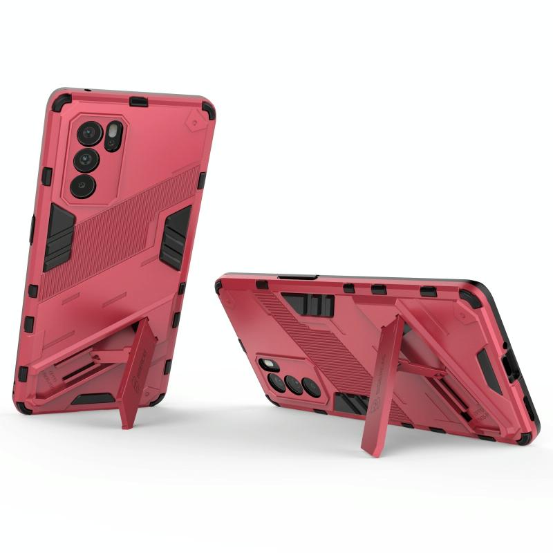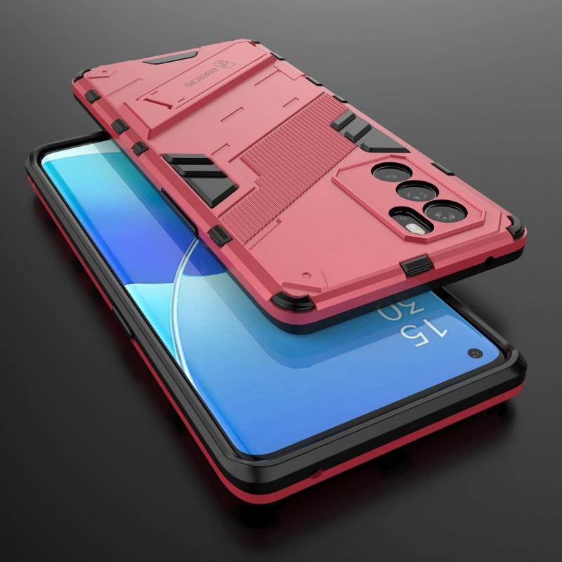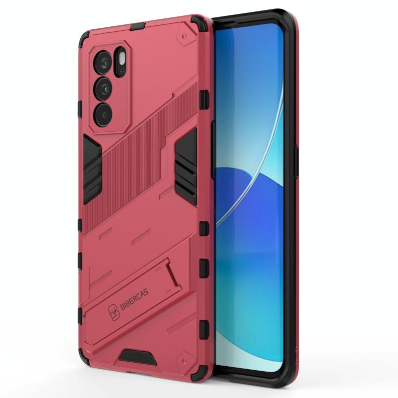 For OPPO Reno6 Pro 5G Punk Armor 2 in 1 PC + TPU Shockproof Case with Invisible Holder(Light Red)