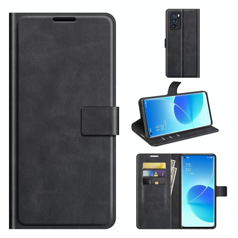 Για OPPO Reno6 Pro 5G Retro μοσχάρι μοτίβο πόρπη οριζόντια Flip δερμάτινη θήκη με κάτοχο & υποδοχές για κάρτες & πορτοφόλι (μαύρο)