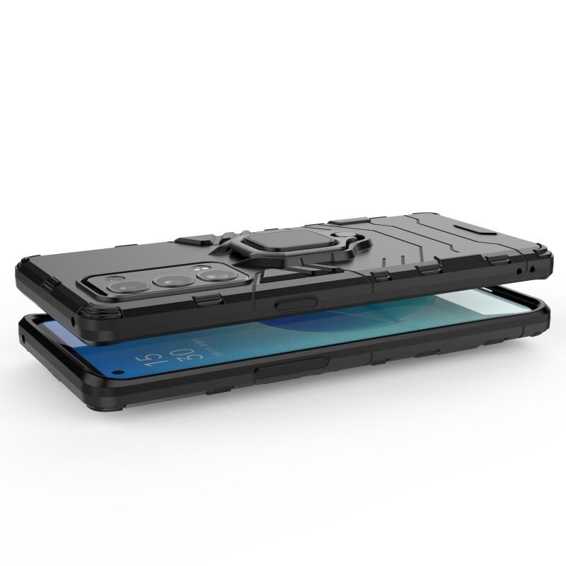 Για OPPO Reno6 Pro + 5G Shockproof PC + TPU Προστατευτική θήκη με μαγνητικό δακτύλιο κάτοχος (Μαύρο)