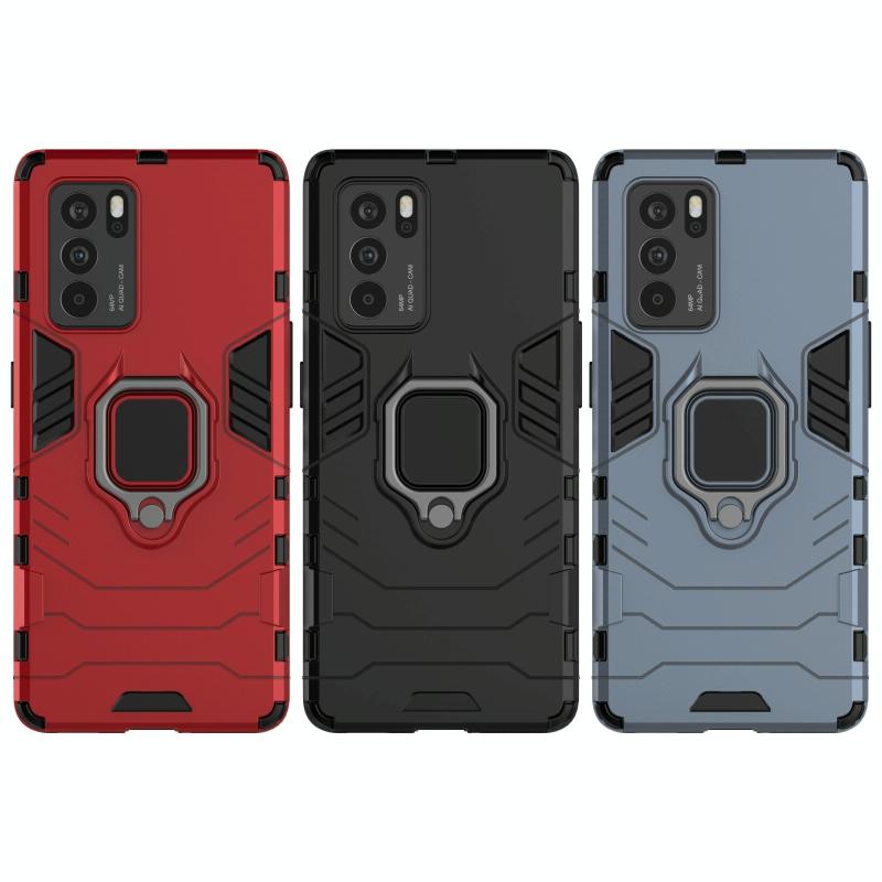 Θήκη Προστασίας για OPPO Reno6 Pro 5G, Ανθεκτική σε Κραδασμούς, από PC + TPU με Μαγνητική Βάση Δακτύλου (Μπλε Ναυτικό)