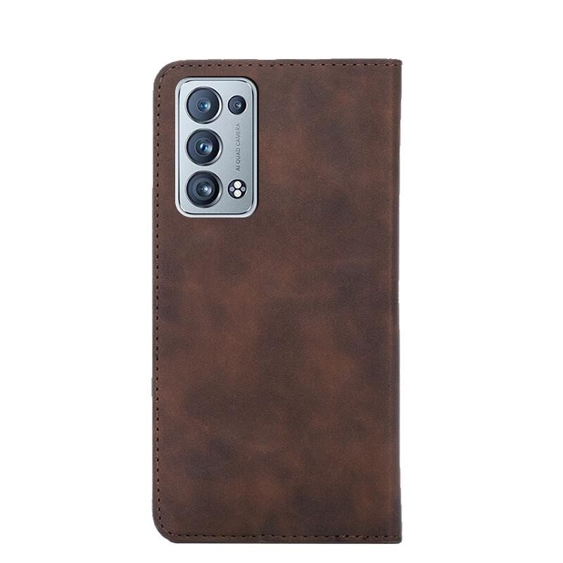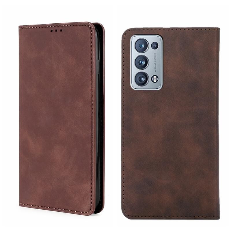 Για OPPO Reno6 Pro + 5G Skin Feel μαγνητική οριζόντια Flip δερμάτινη θήκη τηλεφώνου (Σκούρο καφέ)