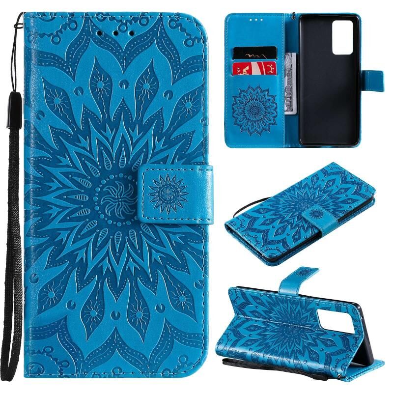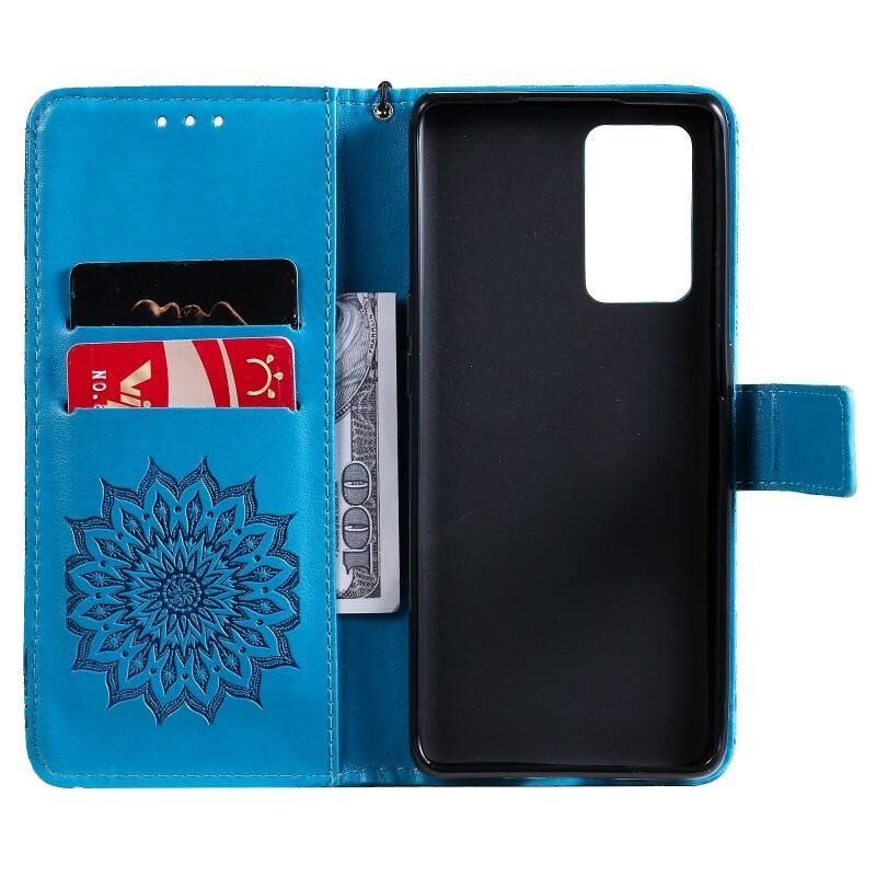 Για OPPO Reno6 Pro 5G Sun ανάγλυφο μοτίβο οριζόντια Flip δερμάτινη θήκη με υποδοχή κάρτας & κάτοχος & πορτοφόλι & Lanyard (Μπλε)