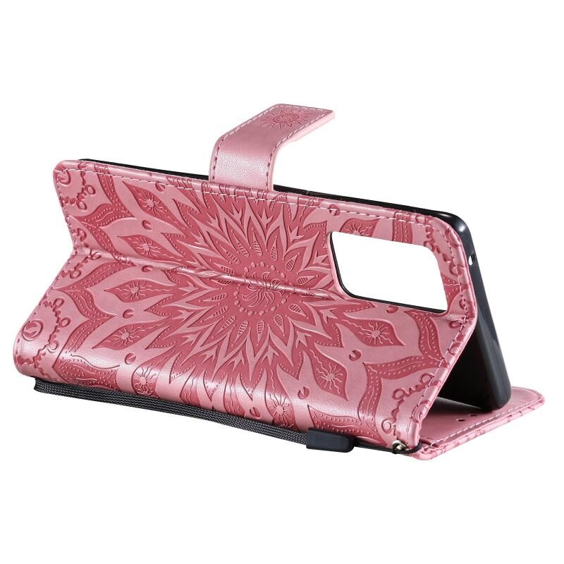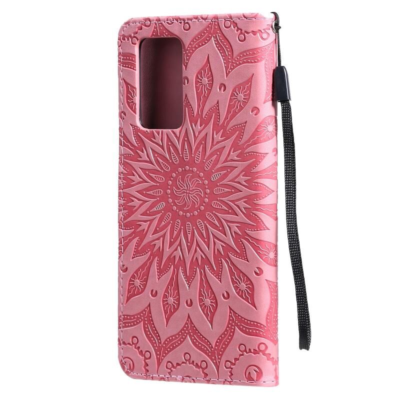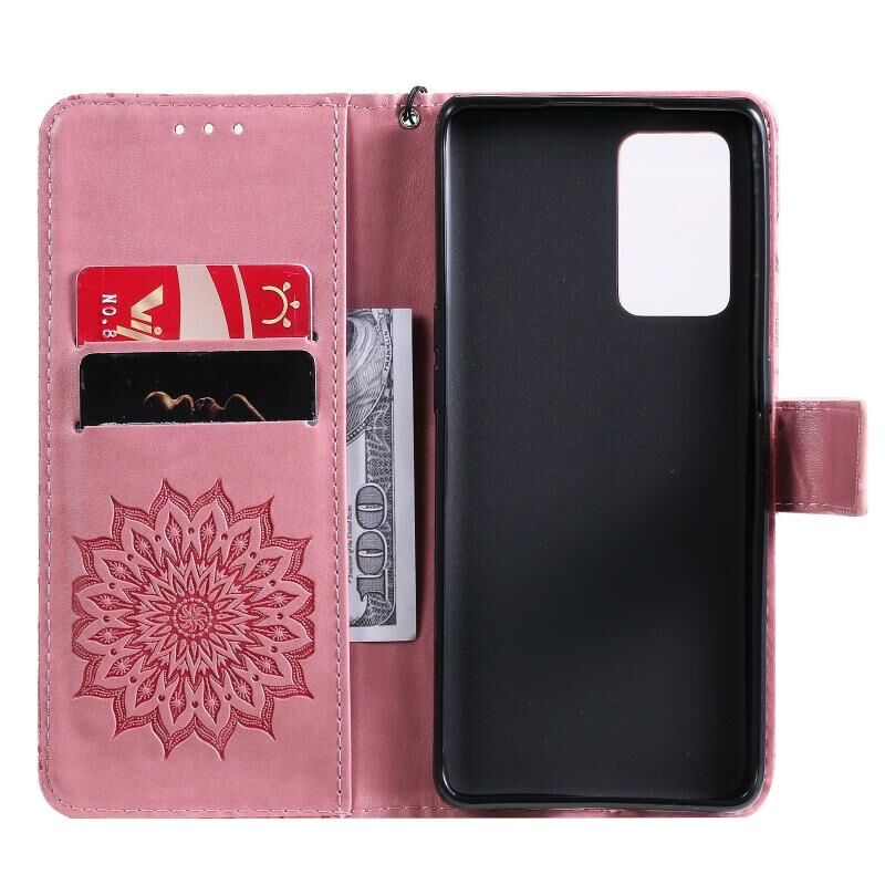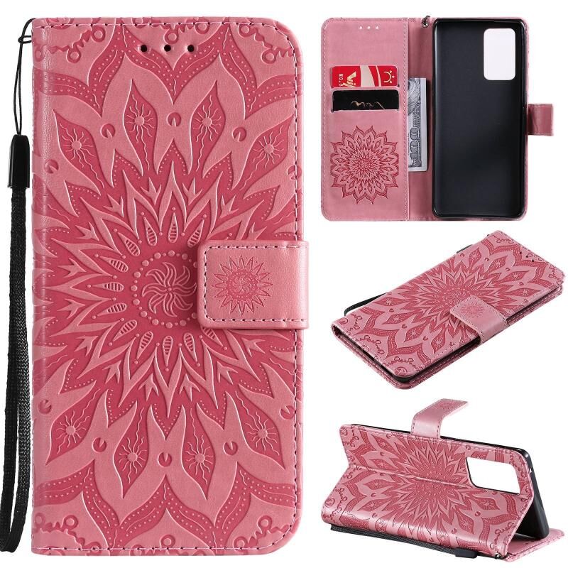 Για OPPO Reno6 Pro 5G Sun ανάγλυφο μοτίβο οριζόντια Flip δερμάτινη θήκη με υποδοχή κάρτας & κάτοχος & πορτοφόλι & Lanyard (ρόζ)