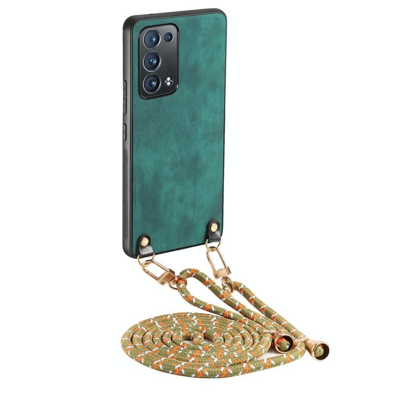 For OPPO Reno6 Pro 5G Vintage Leather PC Back Cover Phone Case with Crossbody Strap(Green)