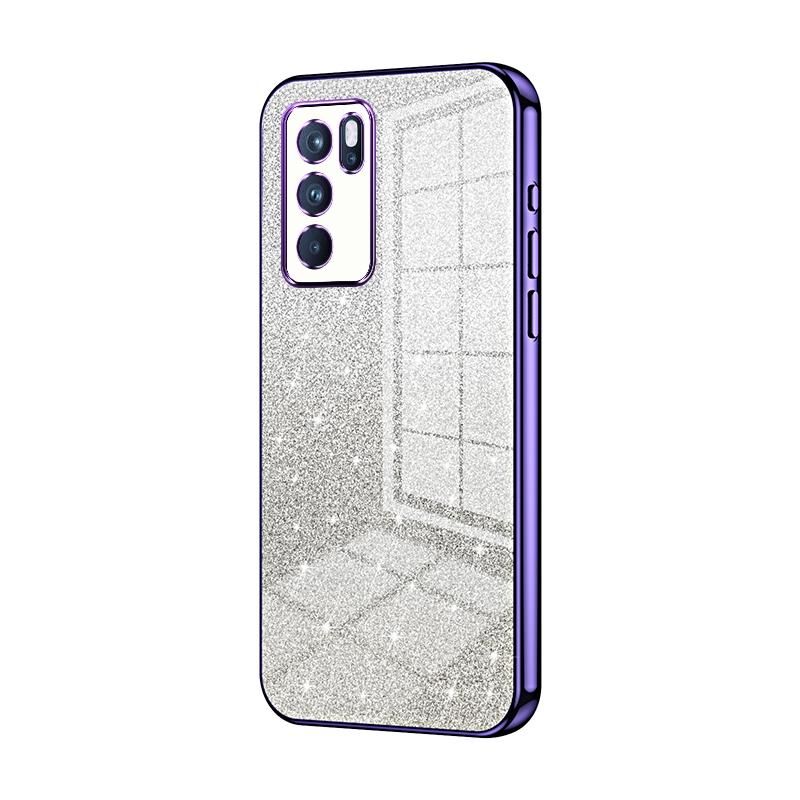 Θήκη τηλεφώνου για OPPO Reno6 Pro Ινδική Διαβαθμισμένη Γκλίτερ Πούδρα Επιχρυσωμένη (Μωβ)