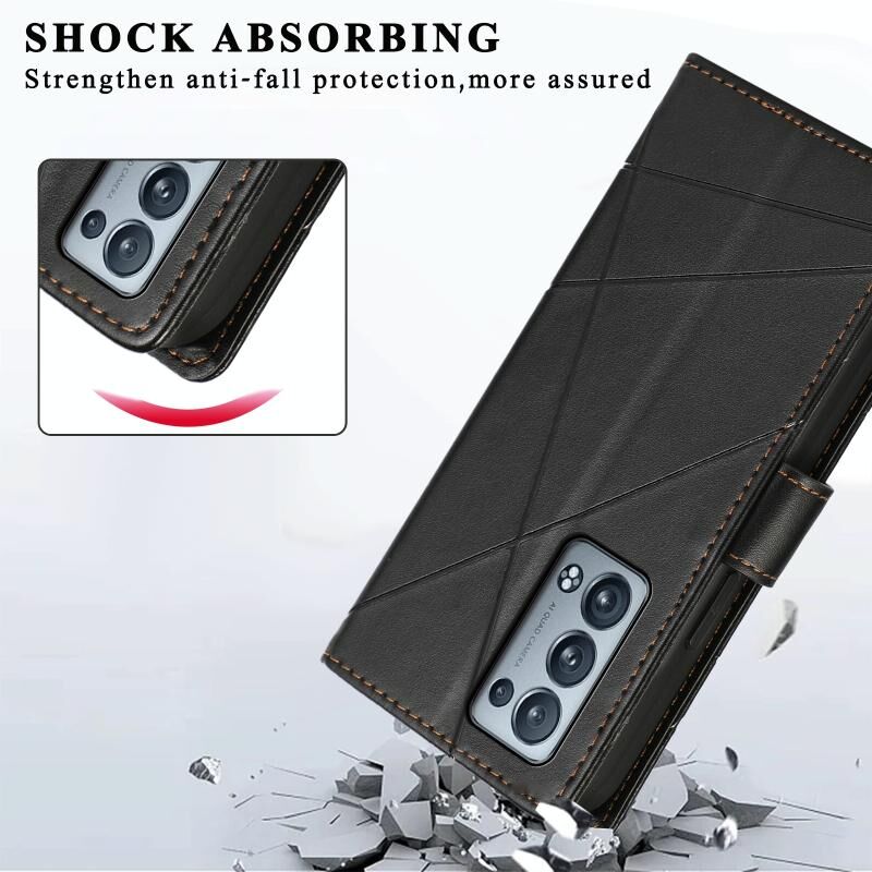 Θήκη τηλεφώνου για OPPO Reno6 Pro+ από γνήσιο δέρμα PU με ανάγλυφη υφή και γραμμές (Μαύρο)