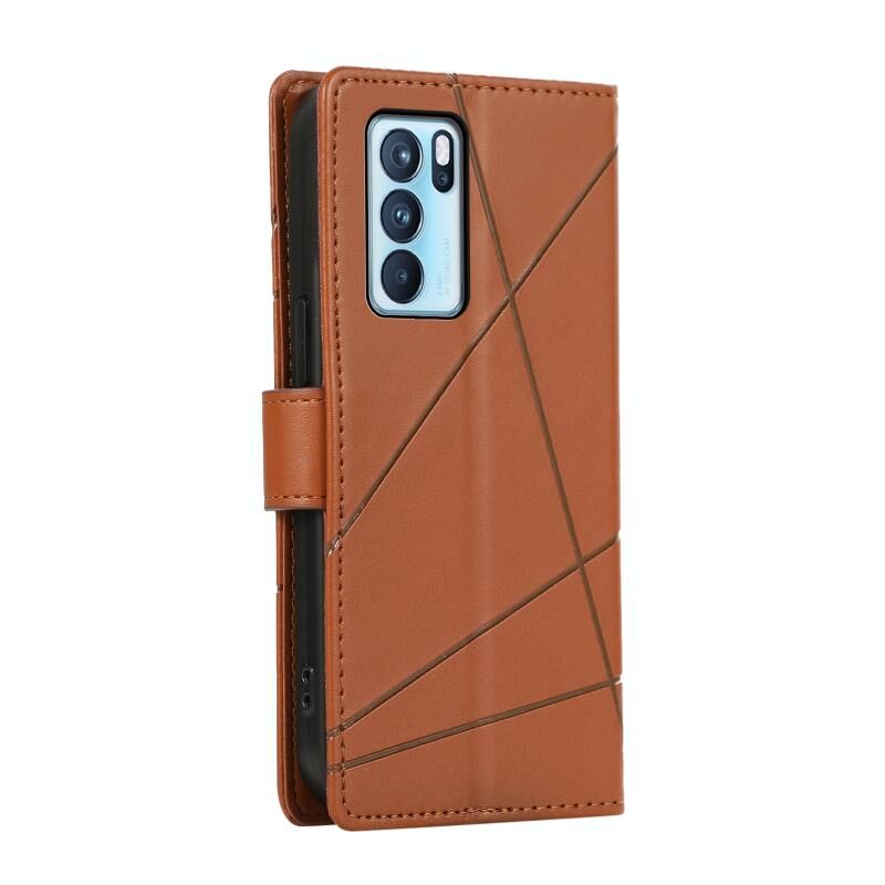 Θήκη τηλεφώνου OPPO Reno6 Pro από γνήσιο δέρμα PU με ανάγλυφη υφή και λεπτομέρειες γραμμής (Μπλε)